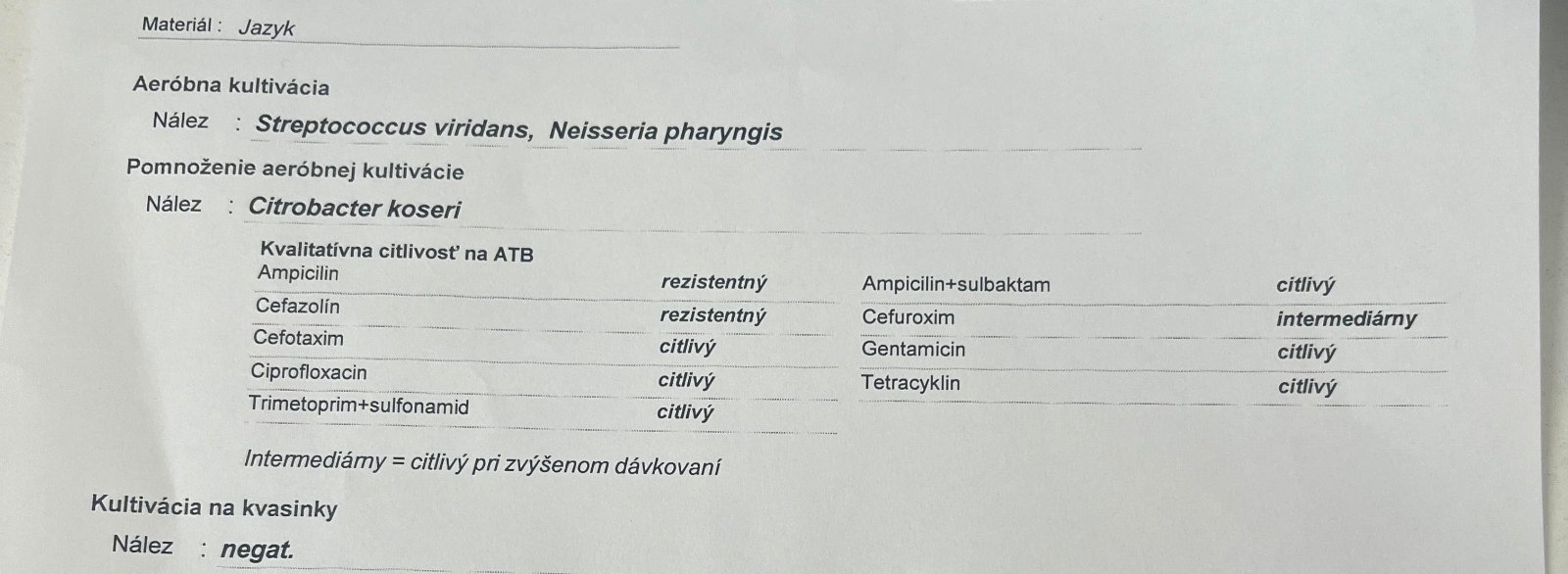 mám pozitívne výtery na jazyku, ide o 3 baktérie. Jedna je Citrobacter koseri.