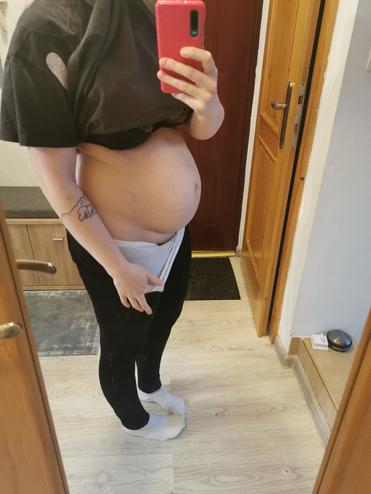 som mesiac po sekcii, bolo to moje druhé tehotenstvo. Ostalo mi takéto brucho. Po prvom prirodzenom pôrode som do mesiaca bola rovná ako doska a pri druhom som pribrala presne ako pri prvom.