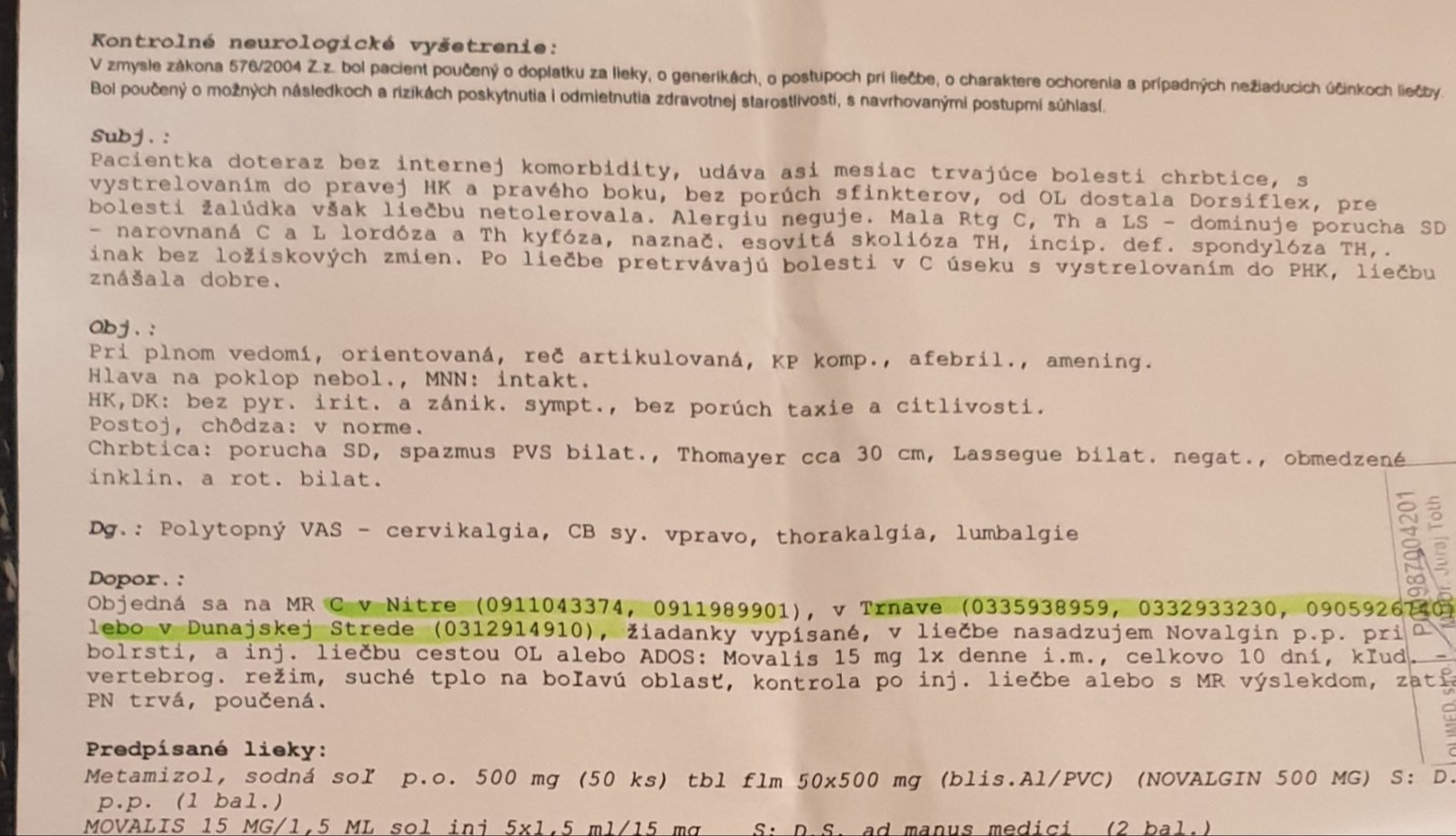 Za účelom doriešenia príčiny bolestí Vám bola vydaná žiadanka na MR vyšetrenie.