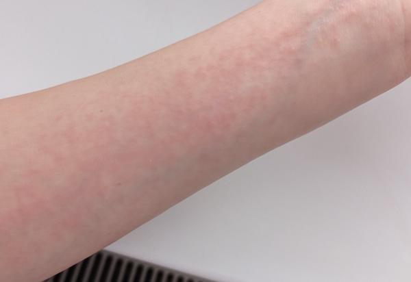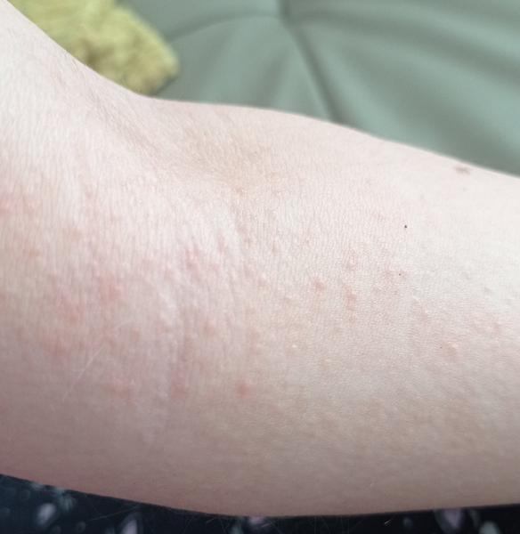 Teraz s odstupom mesiaca sa mi opäť vytvorili. Tento raz len na ruke a trochu na krku. Spočiatku nesvrbeli, ale po dvoch dňoch začali veľmi svrbieť. Jeden deň ma aj pálila koža.
