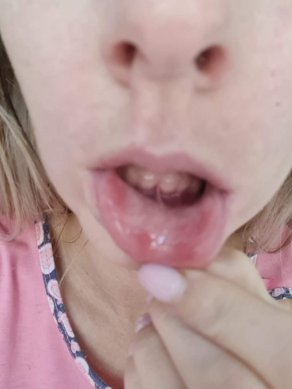 mám podráždenú ústnu dutinu a červené fľaky. Mám pocit stŕpnutia v ústach. Vysušuje mi pery zvnútra až tak, že ráno ich mám zlepené o zuby. Doktorka mi robila odber a výsledky sú ok. Nič mi nedala. Iba si mám vyplachovať harmančekom. Mám 18 mesačného syna, ktorého ešte dojčím.