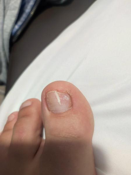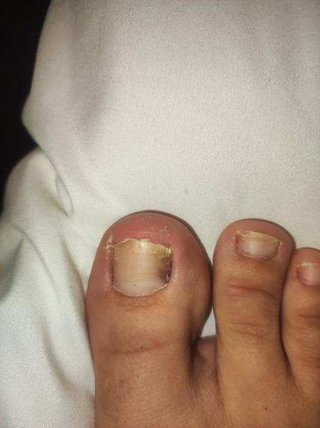 najskôr pôjde o nechtovú mykózu, lokálne je vhodné aplikovať si Loceryl - lak na nechty, pri nelepšení odporúčam absolvovať dermatologické vyšetrenie.