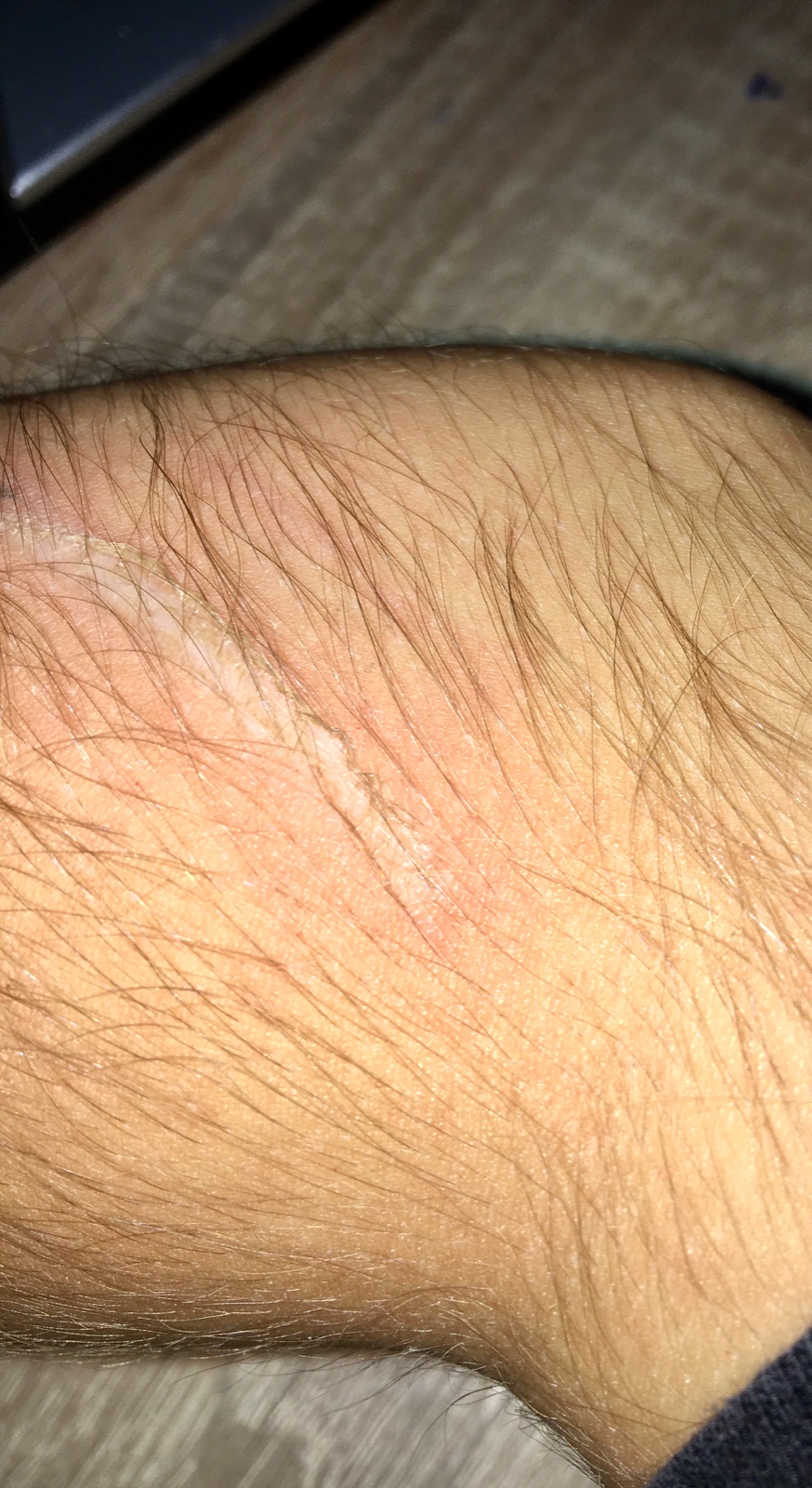 podľa fotografie nejde o závažný typ popáleniny, pretože nie je narušený kožný kryt.