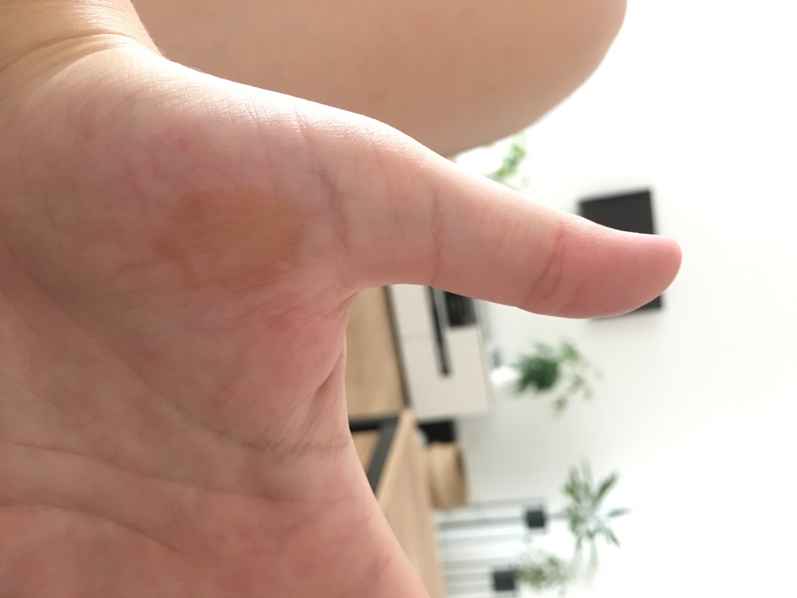 chcela by som sa poradiť ohľadom môjho problému. Ráno som sa zobudila s týmto fľakom na dlani. Myslím si, že trochu je aj na konci ukazováka.