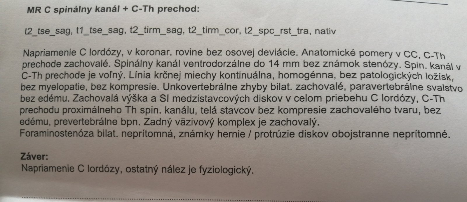 Aký máte názor na moje výsledky z magnetickej rezonancie krčnej chrbtice?