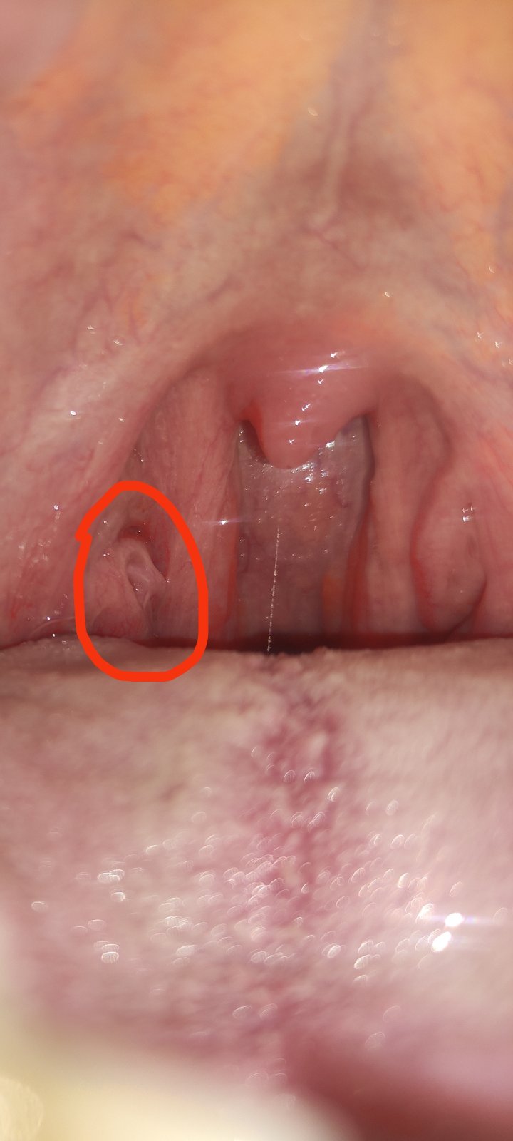 podľa fotografie sa nález javí ako fyziologický, avšak ak by Vám útvar rástol, teda zväčšoval sa, tak je potrebné doplniť ORL vyšetrenie, môže ísť o polyp.