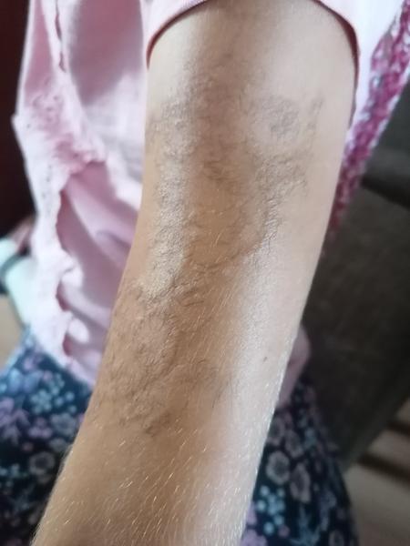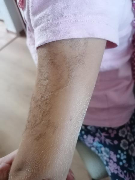 po henovom tetovaní (domienka, že ide o prírodnú farbu) má 6 ročná v miestach, kde bola kresba vytupenú kožu. Je to niečo medzi pľuzgierom a vyrážkou. Ako 3D tetovanie pod farbou. Zjavne reakcia na farbu.