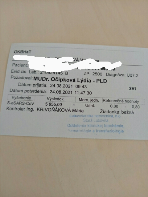 podľa tohto výsledku má Vaša mama dostatok protilátok proti Covid-19.