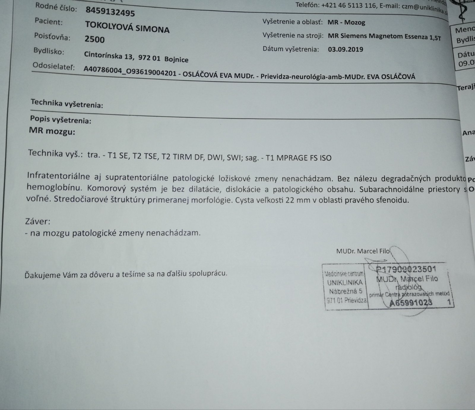 chcela by som sa poradiť ohľadom magnetickej rezonancie.