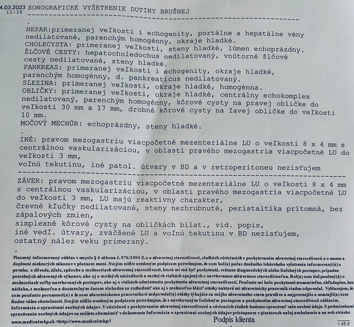 na sone brucha mi v oblasti čriev boli nájdené viacpočetné uzliny. Pani doktorka spomenula aj nejaké uzlíky.
