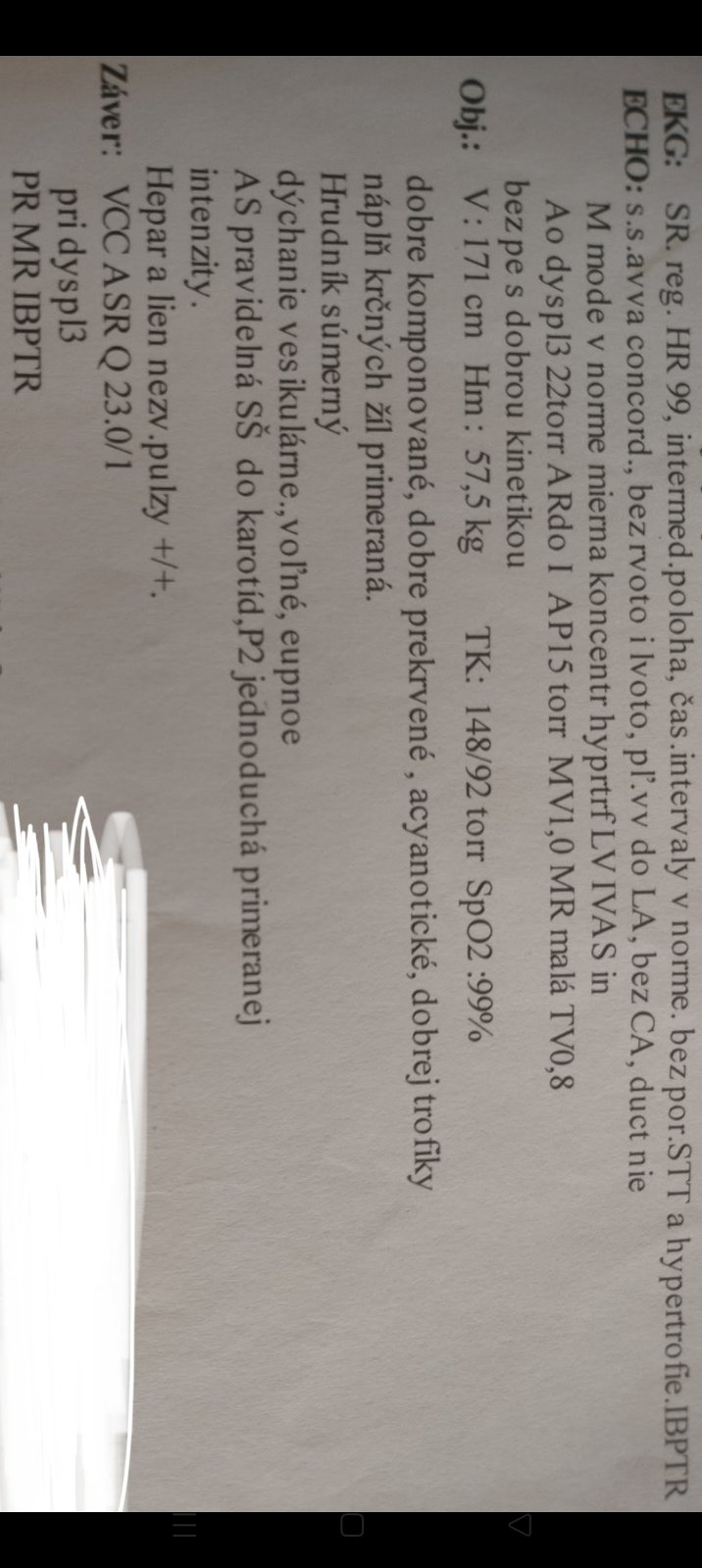 nález po operácii srdca (predsieňová resekcia septa) je v poriadku.