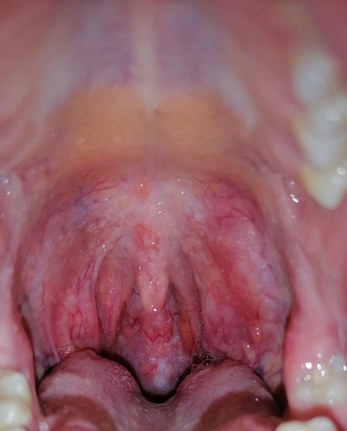 Skúste kloktať slabú vodu alebo Tantum verde alebo Glimbax, ak by sa ťažkosti nezmiernili, tak sa poraďte s Vašim lekárom.