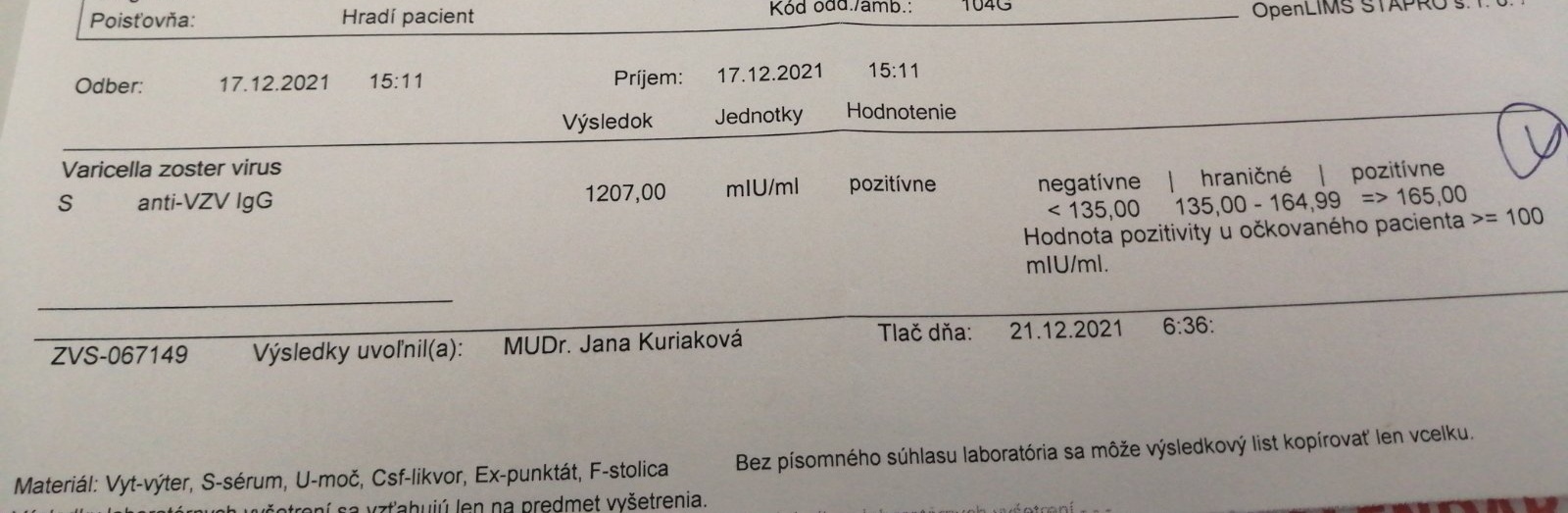 podľa výsledkov máte dostatok protilátok, teda prekonali ste kiahne v minulosti.