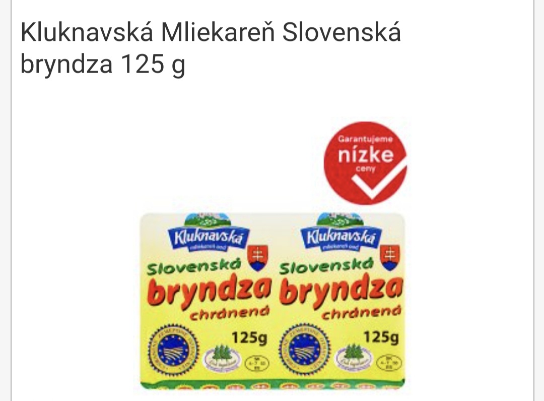 som v prvom trimestri a dnes som si dala bryndzové halušky. Na bryndzi bolo napísané: Skladovaný ovčí syr vyrobený zo surového mlieka. Kravský hrudkový syr vyrobený z pasterizovaného mlieka.