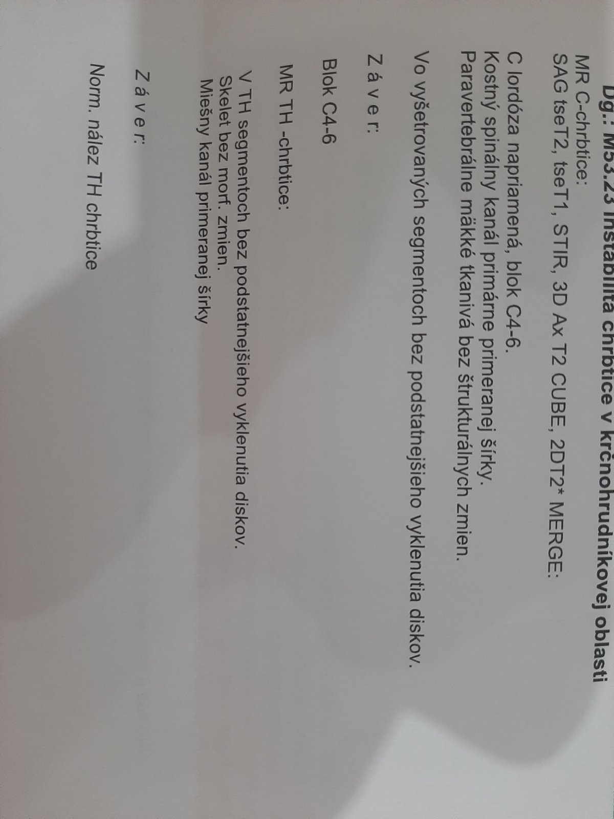 s výsledkom som ešte nebola u doktorky. Bolo mi povedané, že mám ísť k lekárke a na rehabilitácie.