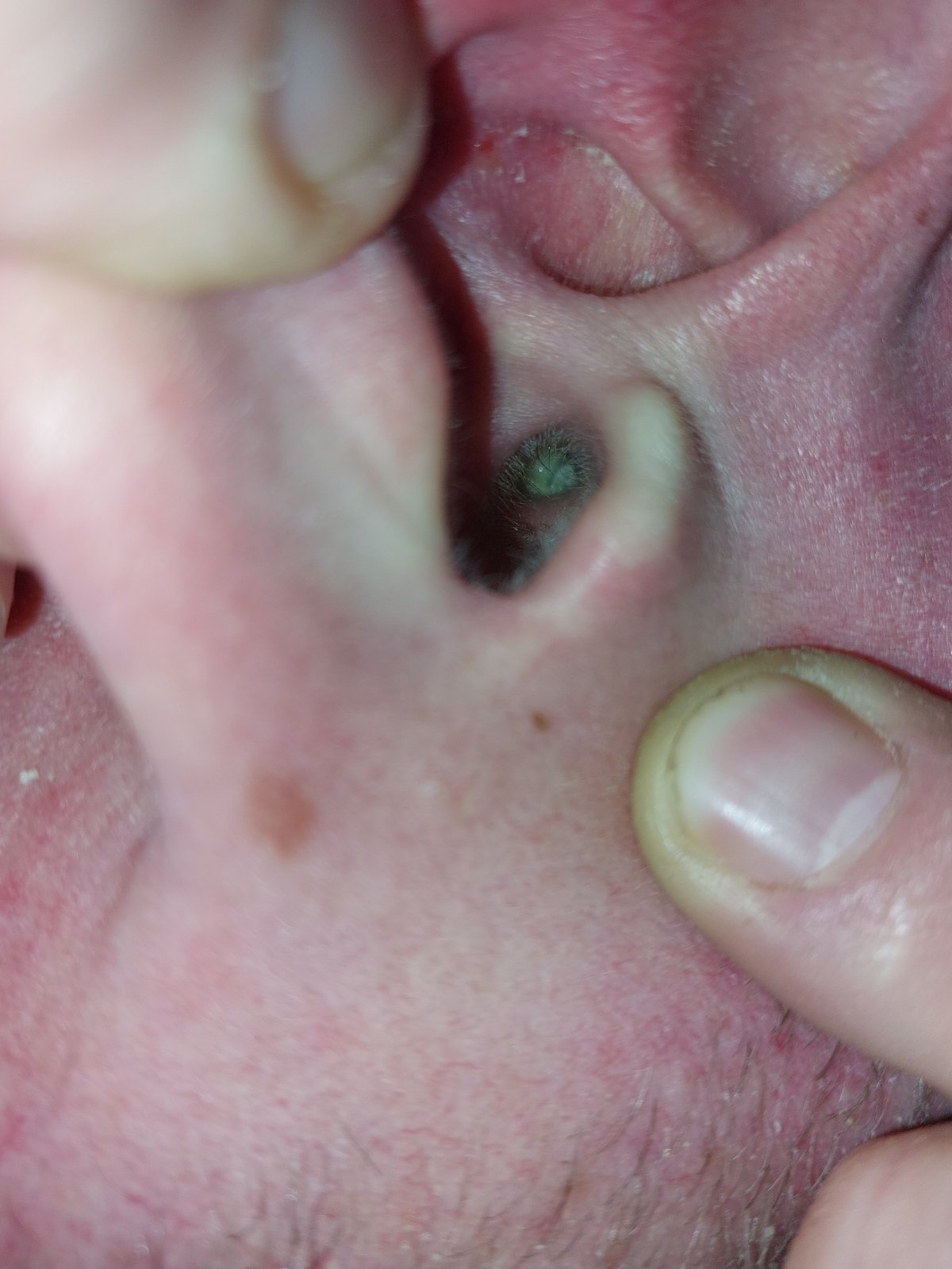 priateľ má zaľahnuté v uchu a vytvoril sa mu v ňom takýto útvar.