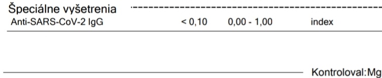 podľa výsledku nemáte protilátky proti Covid-19.