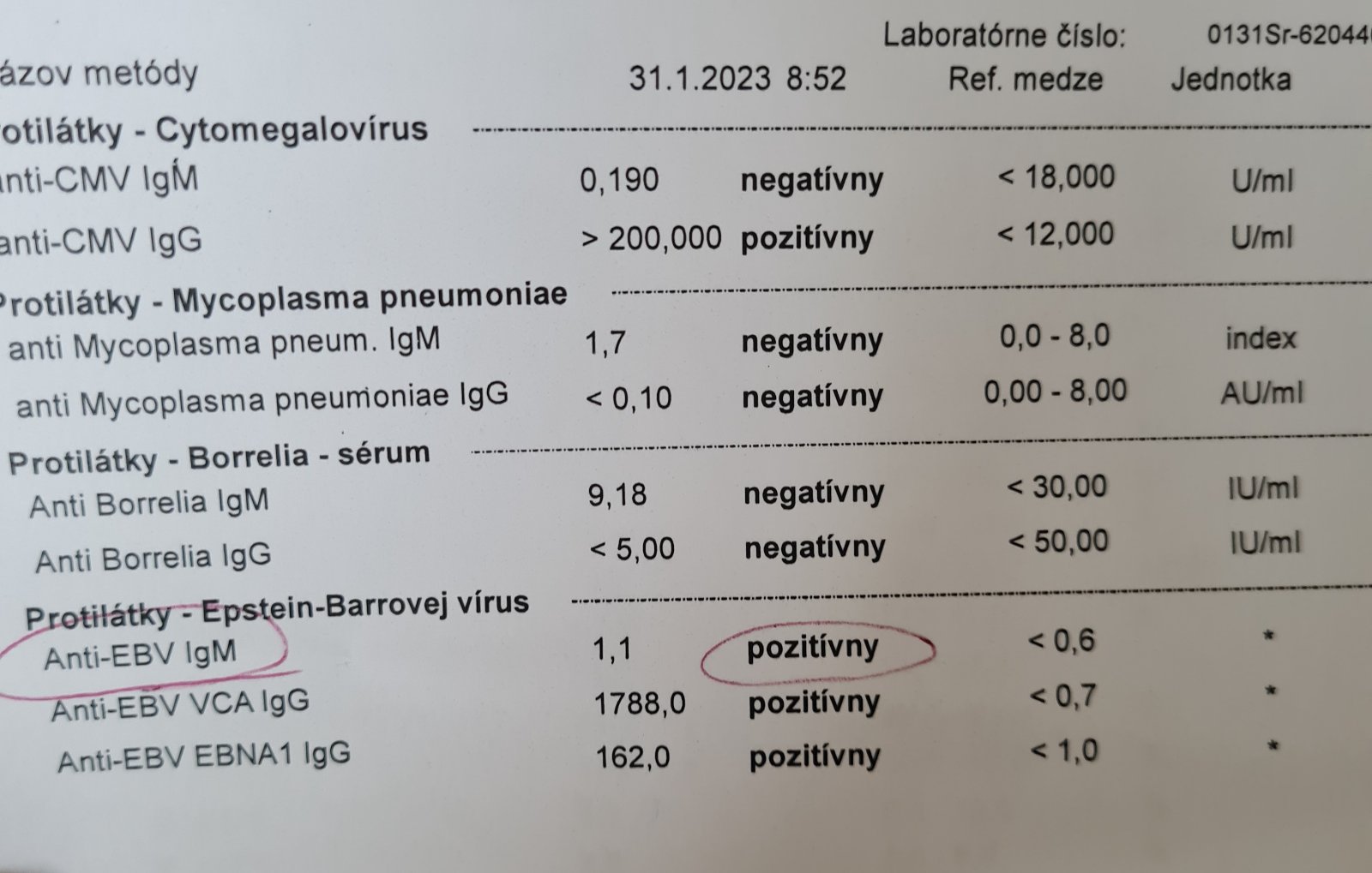 anti-VCA - IgM – pozitivita svedčí o akútnom štádiu ochorenia a netrvá dlhšie ako 2-4 mesiace. Opakovaná pozitivita nasvedčuje o reaktivácii alebo chronickej infekcii EBV.