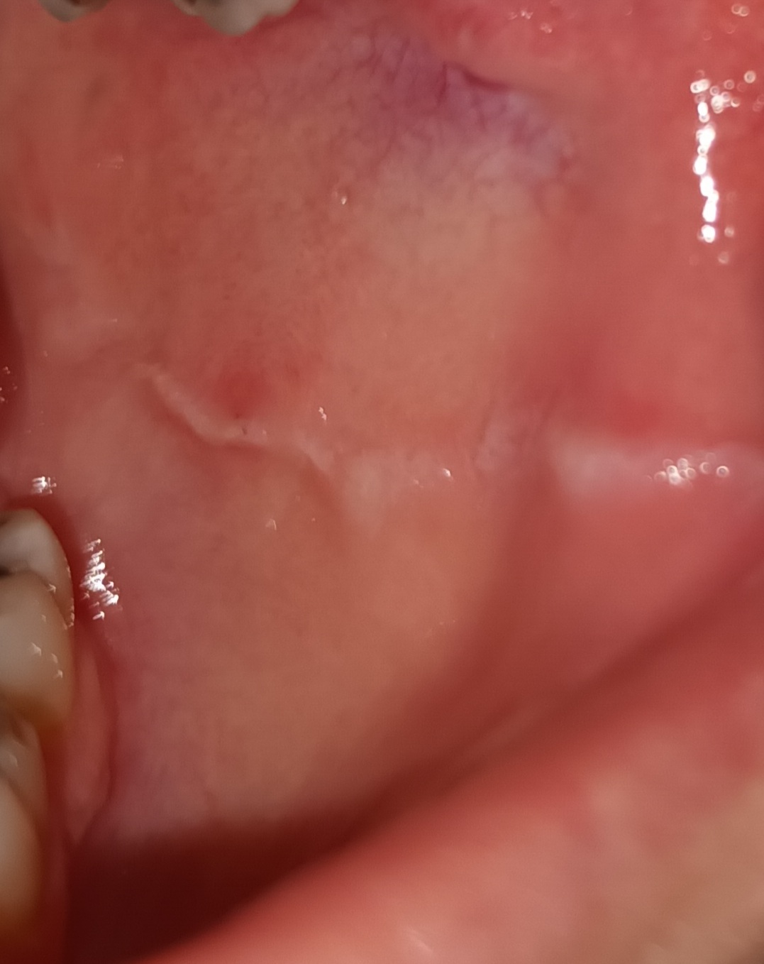 pár dní dozadu som si zvnútra porezala peru. Dnes som si všimla, že od tej rany sa mi tiahne biela čiara vo vnútri líca. A na jazyku z boku to isté. Biele čiary sa mi vytvorili aj na druhej strane úst. Pociťujem bolesť jazyka.