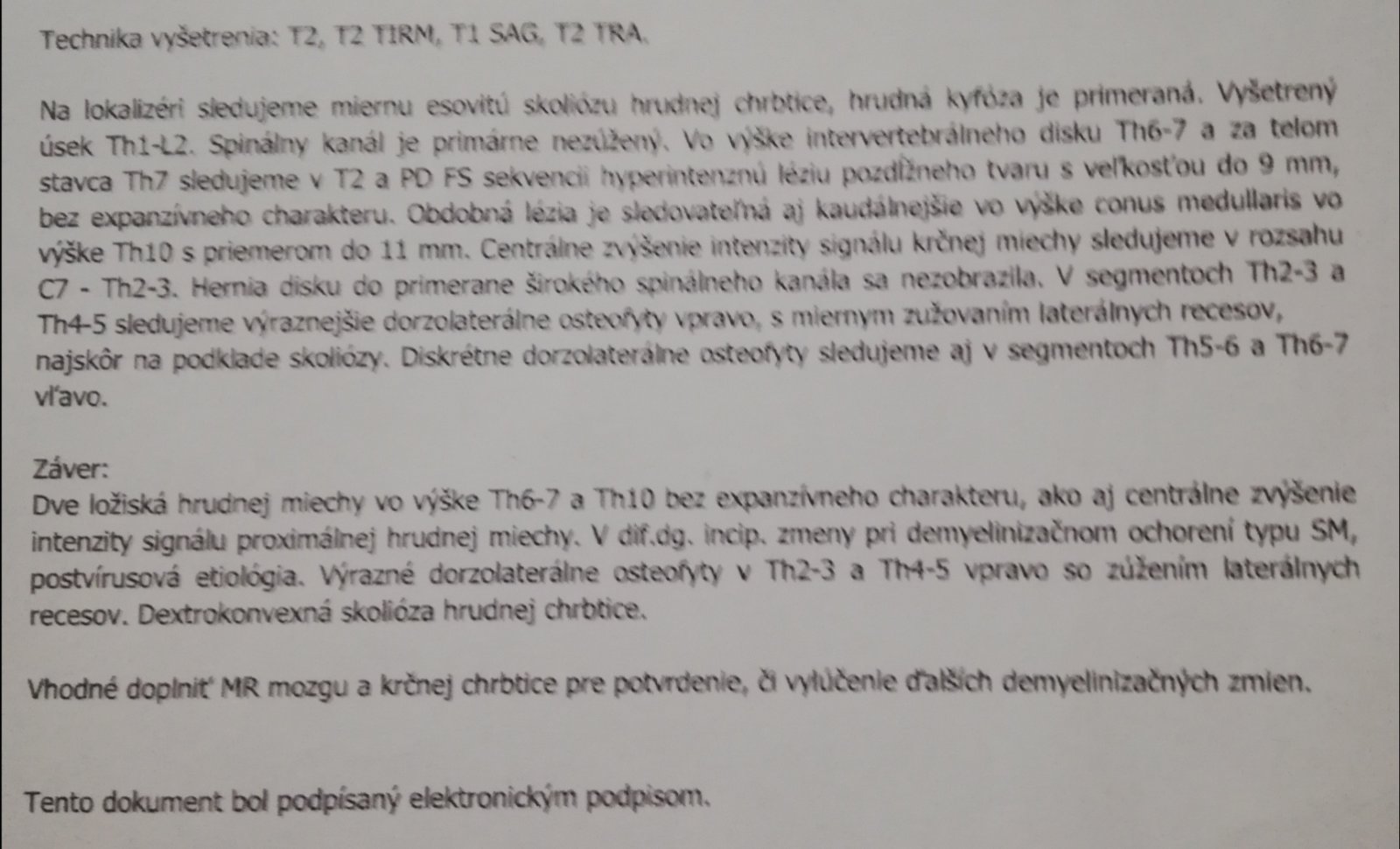 na MR hrudnej chrbtice mi našli 2 lézie. Poslali ma ešte na MR hlavy a krčnej. V žiadanke uviedol neurológ diagnózu SM.