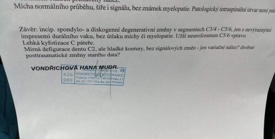 podľa popisu máte prítomné degeneratívne zmeny na krčnej chrbtici. Ide o nezávažný nález, pretože nedochádza k útlaku periférnych nervov. Dôležitá je u Vás rehabilitácia a pravidelné cvičenie.