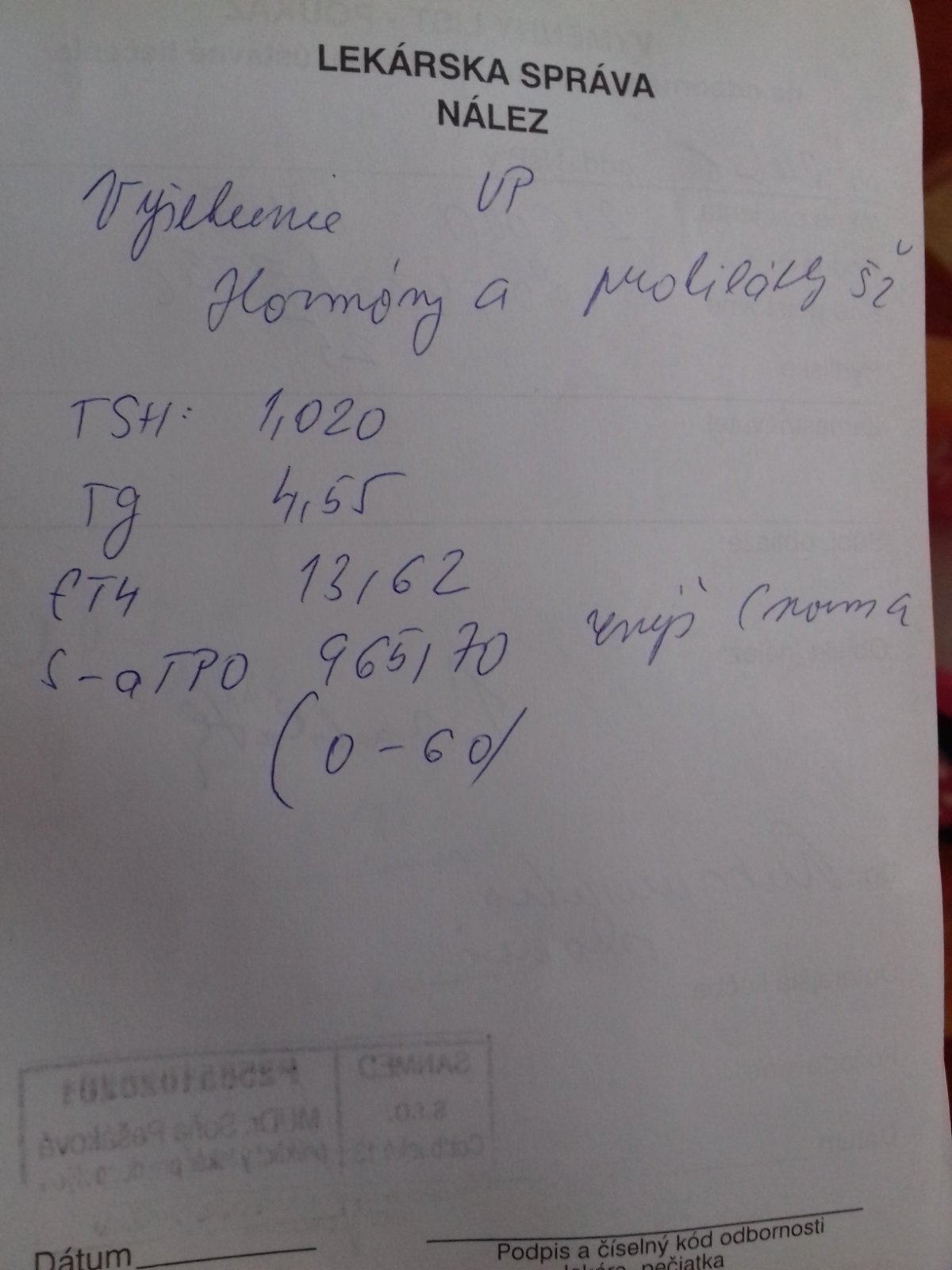 hladina hormónov štítnej žľazy je v norme, to znamená, že na liečbu ste nastavená dobre.