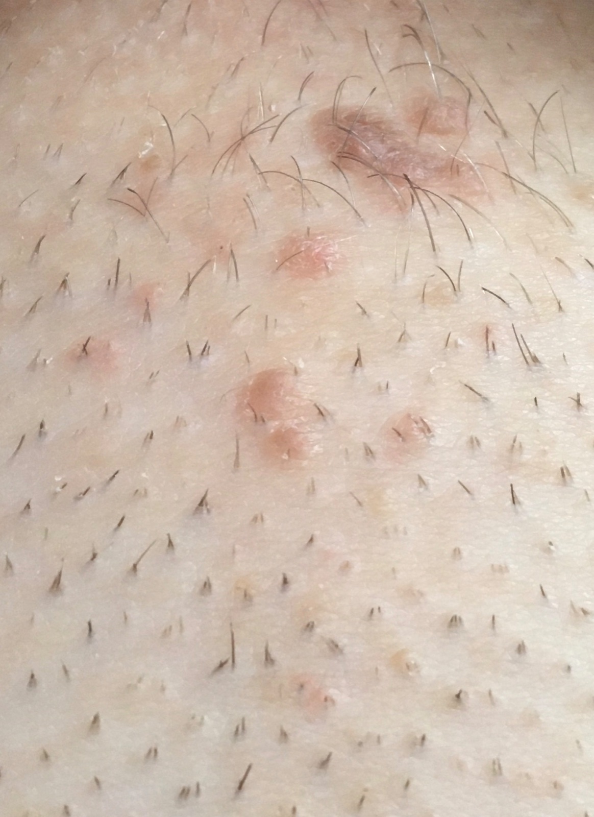 podľa fotografie to vyzerá ako drobné znamienka. Nález je potrebné si odsledovať, je dôležité dávať si na to pozor pri holení.