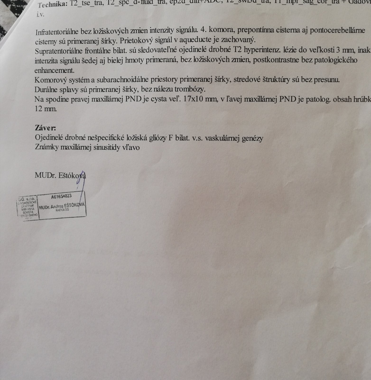 MR nález je z môjho pohľadu v norme, máte aj zápal čeľustnej dutiny vľavo.