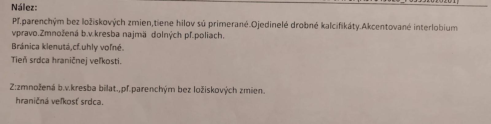 Pľúca sú podľa RTG snímky v poriadku. Veľkosť srdca je hraničná, nejde ešte teda o zväčšené srdce.
