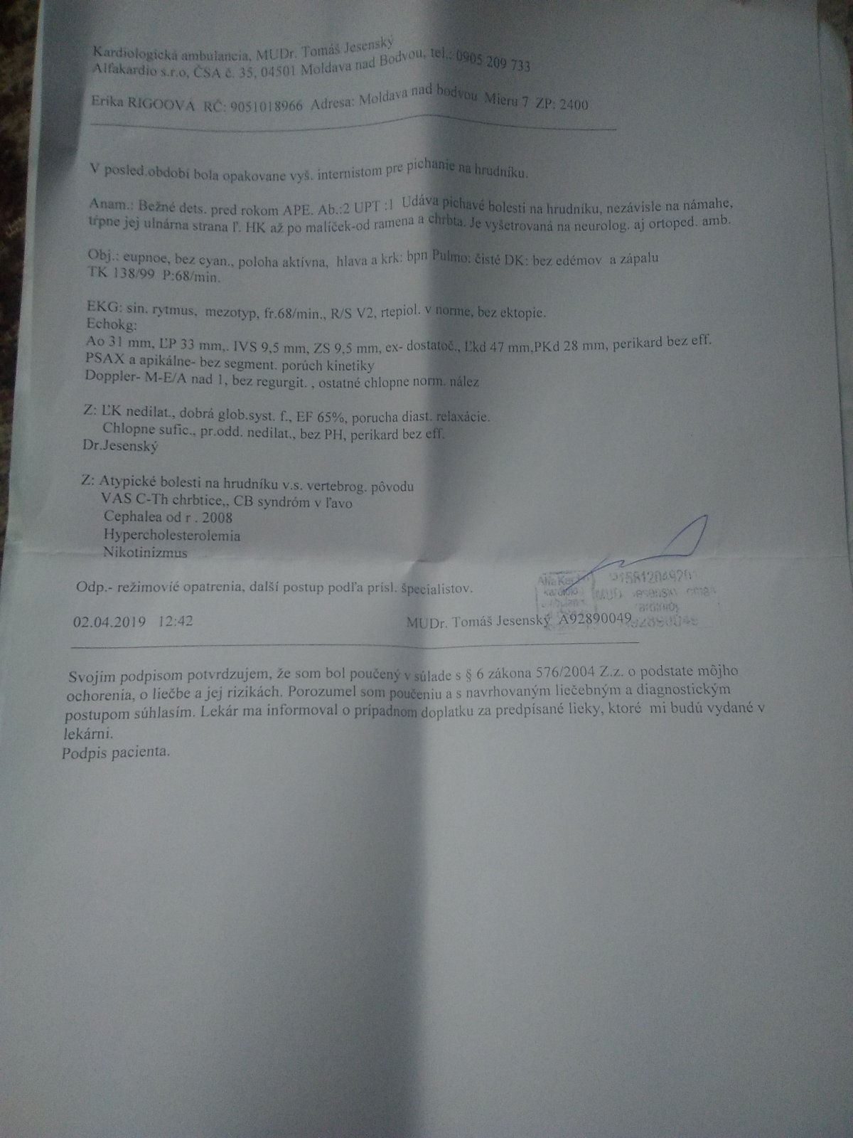 absolvovala som kardiologické vyšetrenie.