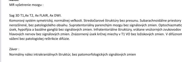 už 5. deň má bolí hlava, spánky a čelo. Mám aj miernu bolesť hrdla. MRI mozgu som mala robené v októbri prikladám výsledky.
