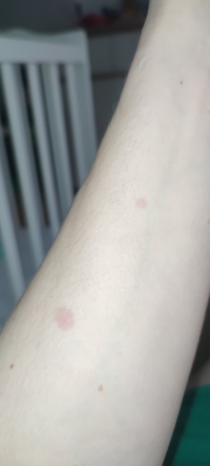 na ruke sa mi vytvorili 2 takéto fľaky. Chorá som nebola dlho a nemám ani žiadne ďalšie problémy. Nemenila som prášok ani aviváž.