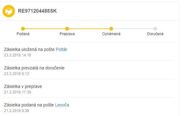 @12martina123 mne to ide a vypísalo mi že je oznámena a uložená na pošte Poltár