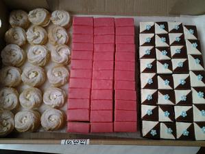 5 zltkov,5 lyzic cukor, 2 lyzice vody/vodu davam aj ked netreba,voda sa odpari/vymiesat,pridat 5 lyzic poloh.muka,nakoniec sneh s 5 bielkov-totok upiect 2x, 6vajec,6lyzic cukor,6lyzic pol.muka troska ruzovej farby,-upiect 1x to je stred,a aby som nezabudla 1PDP rozdelim medzi tie 3 korpusy