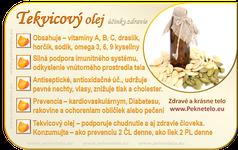 Tekvicový olej sa odporúča používať za studena, bez tepelnej úpravy. Je vhodný na prípravu šalátov, nátierok, omáčok, dressingov, na dochutenie a dekoráciu varených pokrmov. Vďaka svojmu zloženiu veľmi dobre vplýva na ľudský organizmus.