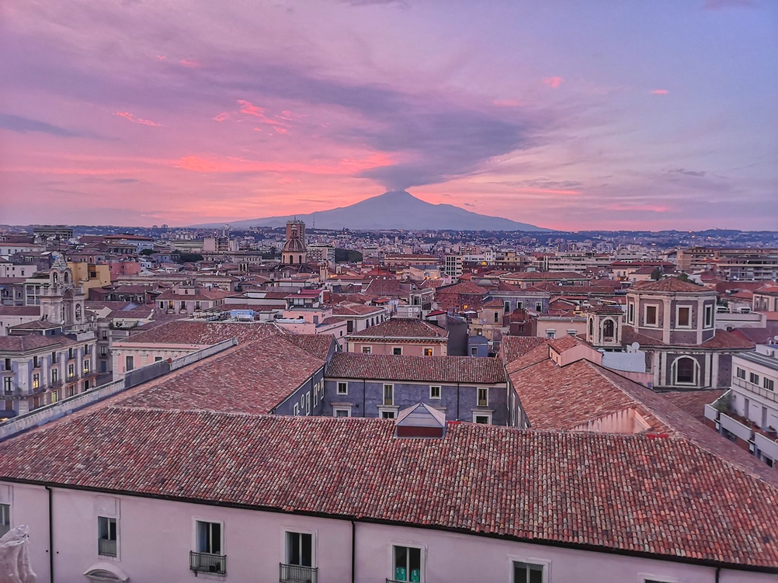 Obrovské mesto pod známou sopkou Etnou. Toto mesto určite stojí za prechádzku, najmä tu večernú. Je tu neskutočný ruch, mesto žije, ale neodporúčam sa tu voziť autom. Tu sa oplatí niekde zaparkovať a ísť pešky, auto je to čisto o držku. Catania toho ponúka veľa, dýcha históriou a nájdete tu i krásne parky. Do pozornosti dávam Baziliku – Catedrala Sant´Agata. V bazilike sa dá ísť do veže, vstup stojí 5 € / osoba. Do polovice sa vyveziete výťahom, potom vás bude čakať asi 50 malých, strmých schodov. Stojí to za to, nám sa jeden podvečer odtiaľ takto krásne ukázala Etna a nebo sa pri západe slnka zafarbilo na ružovo.