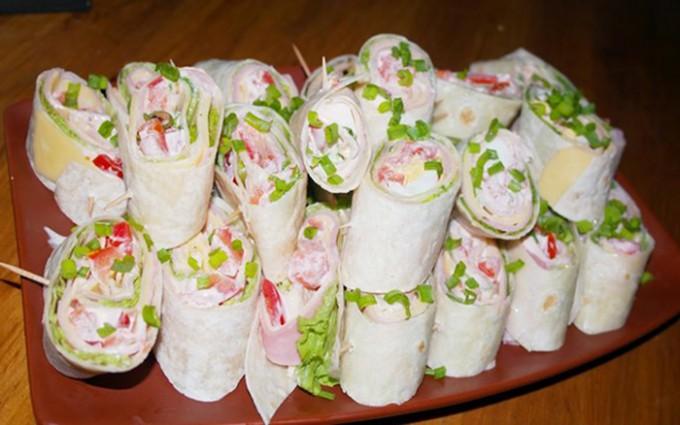 Každú tortilu potrieme pripraveným dressingom, poukladáme šunku, syr, šalát a paradajku. Zrolujeme a nakrájame na menšie kúsky, ktoré prepichneme špáradlom. Vrch posypeme jarnou cibuľkou a podávame. Dobrú chuť! http://www.napadynavody.sk/party-rolky-priprave...