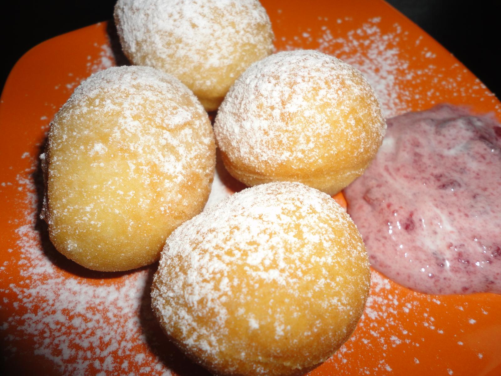 Nechám vykysnúť a vykrajujem malým pohárom guličky ,nechám pár min oddýchnuť a vyprážam na rozpálenom oleji