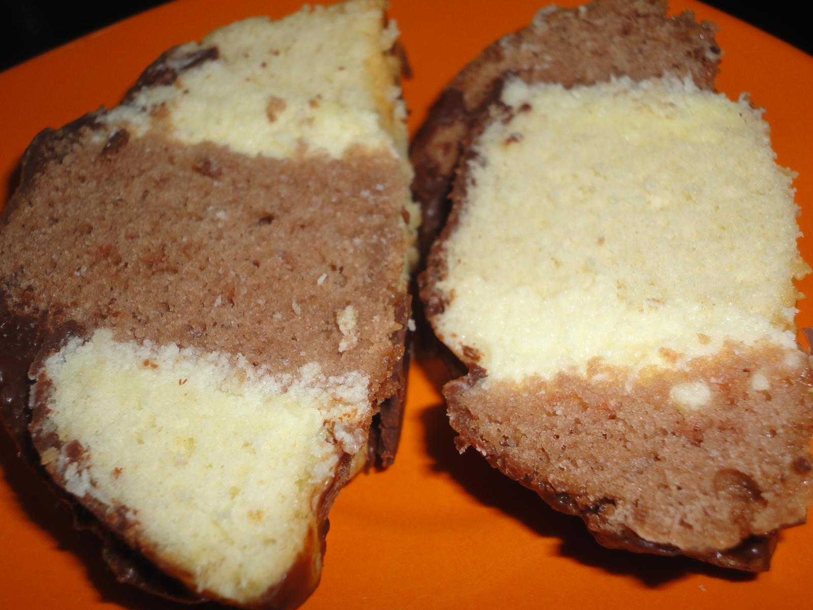 Obidve cesta upecieme v dvoch formách na srnci chrbat ,vymastenych tukom a vysypanych mukou.Vychladnute pokrajame na rezy .ktore natierame kremom a striedavo prilepujeme k sebe ,blede a tmave rezy.