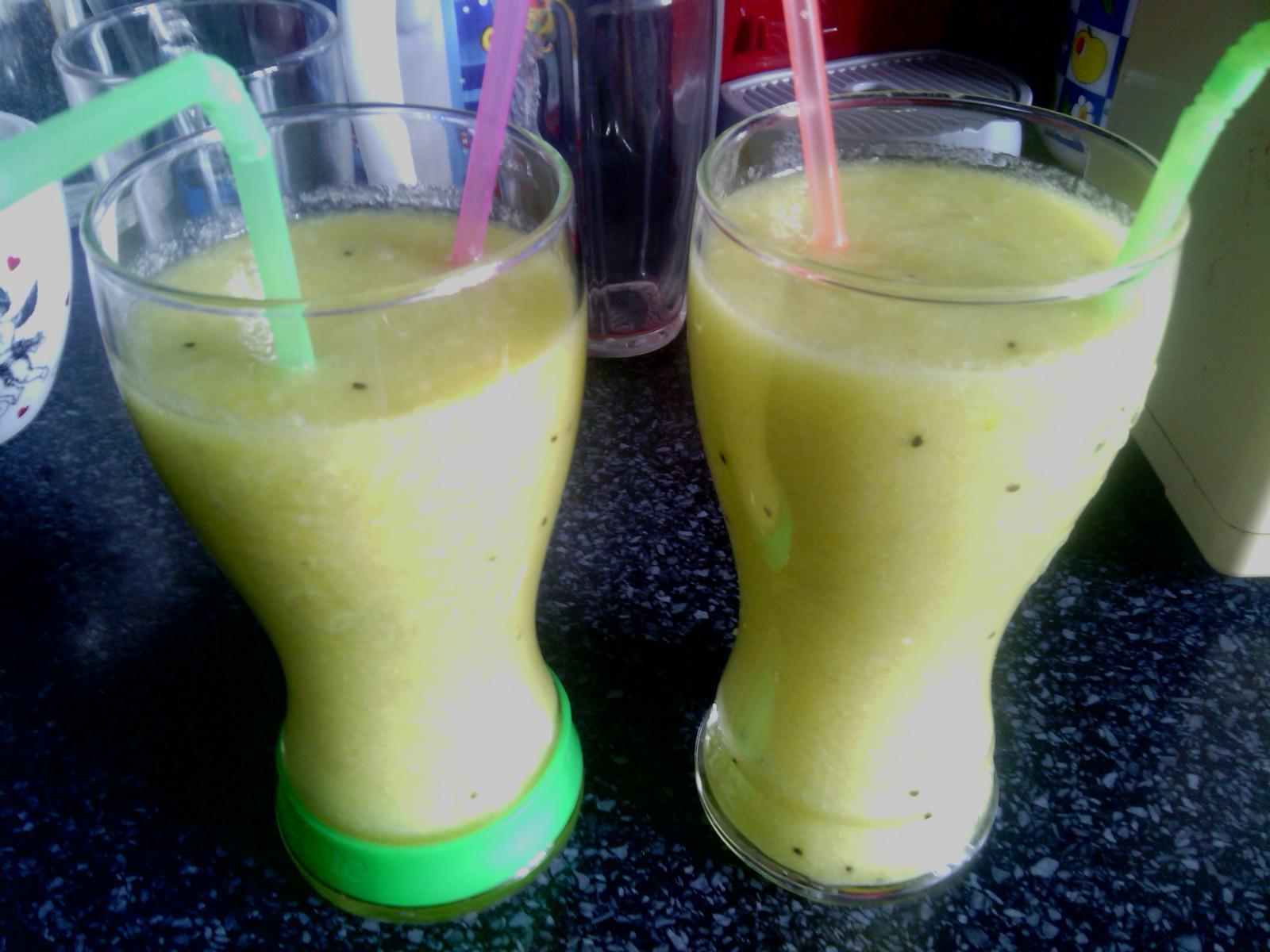 Ovocie ake mame doma🙂ja som dala 3odstavene pomarance a jeden citronrozmixovat 3jablka,2kiwi, a vsetko zmiesame ak je to huste pridajte vodu ,Lucku kto co chce