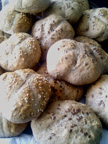 Suroviny: 3 dcl vody 1/2 sáčku suš.droždia Alebo 1/2 čerstvého droždia 1 ČL hnedého cukru 2 ČL soli 1 ČL rasca drvena 1čl rasca celá 1 PL ocot 2 PL domacej masti alebo olej ja davam masť 30 dkg hladkú múku 20 dkg celozrnnú pšeničnú múku POSTUP -Domáce pekárne - program cesto - suroviny vložím do pekárničky Vykysnuté cesto rozdelím na 7 až 9 ,ja som robila 7 a veľké žemle /cesto si podsypujem hl. múkou/. Dám na plech vyložený papierom na pečenie a nechám aspoň 20 minut kysnúť. Potrieť bielkom a posypala som ľanovými semiačkami a zezamove semiacka Piekla som na 170st asi tak 25 min