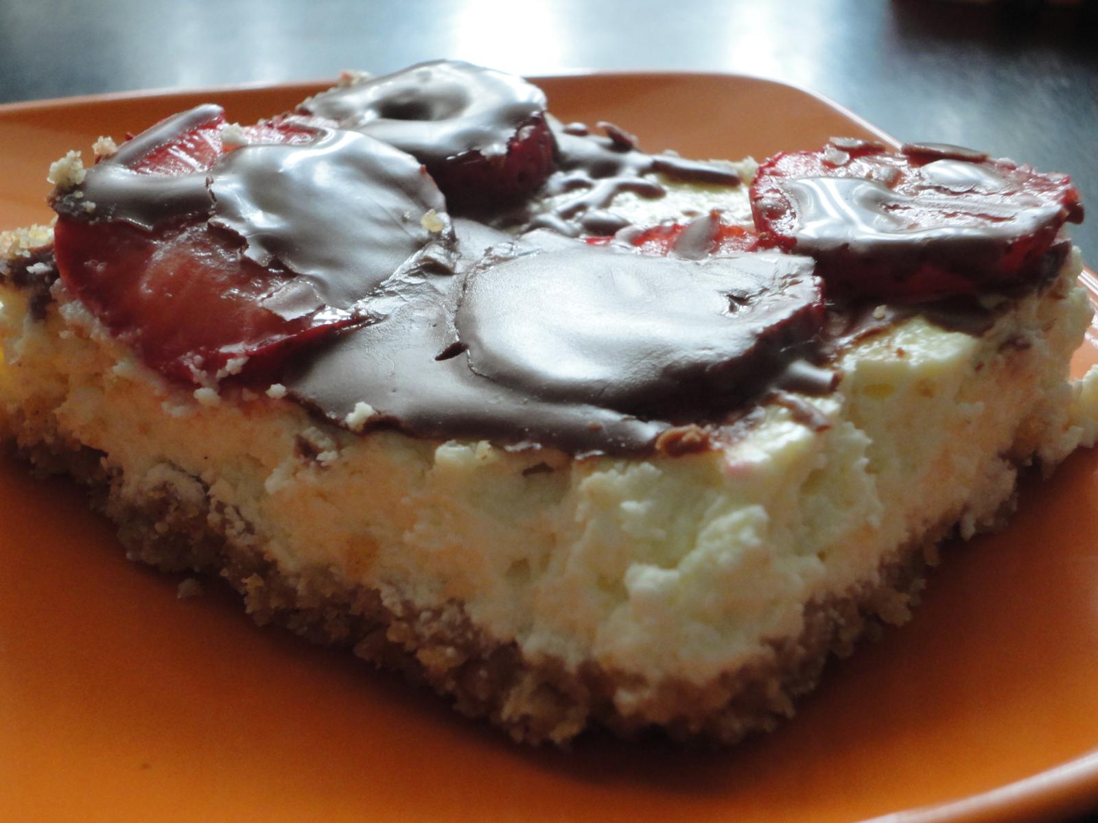 Kúpené keksy rozdrvíme, zmiešame s roztopeným maslom a vložíme na dno košíčkov. Sladkú bielu zmes vytvoríme rozmixovaním tvarohu s vanilkovým cukrom, smotanou a štipkou oleja. Po prvom premiešaní pridáme ešte smotanu, vajcia, trochu soli, zlatý klas, práškový cukor a znova pomixujeme. Zmes rozlejeme do košíčkov a dáme piecť na približne pol hodinu do rúry zohriatej na 130°C. Pokým sa košíky upečú, roztopíme si čokoládu so zvyškom smotany. Na záver ňou košíky polejeme a dozdobíme kúskami jahôd. Tento dezert vyzerá naozaj dobre.