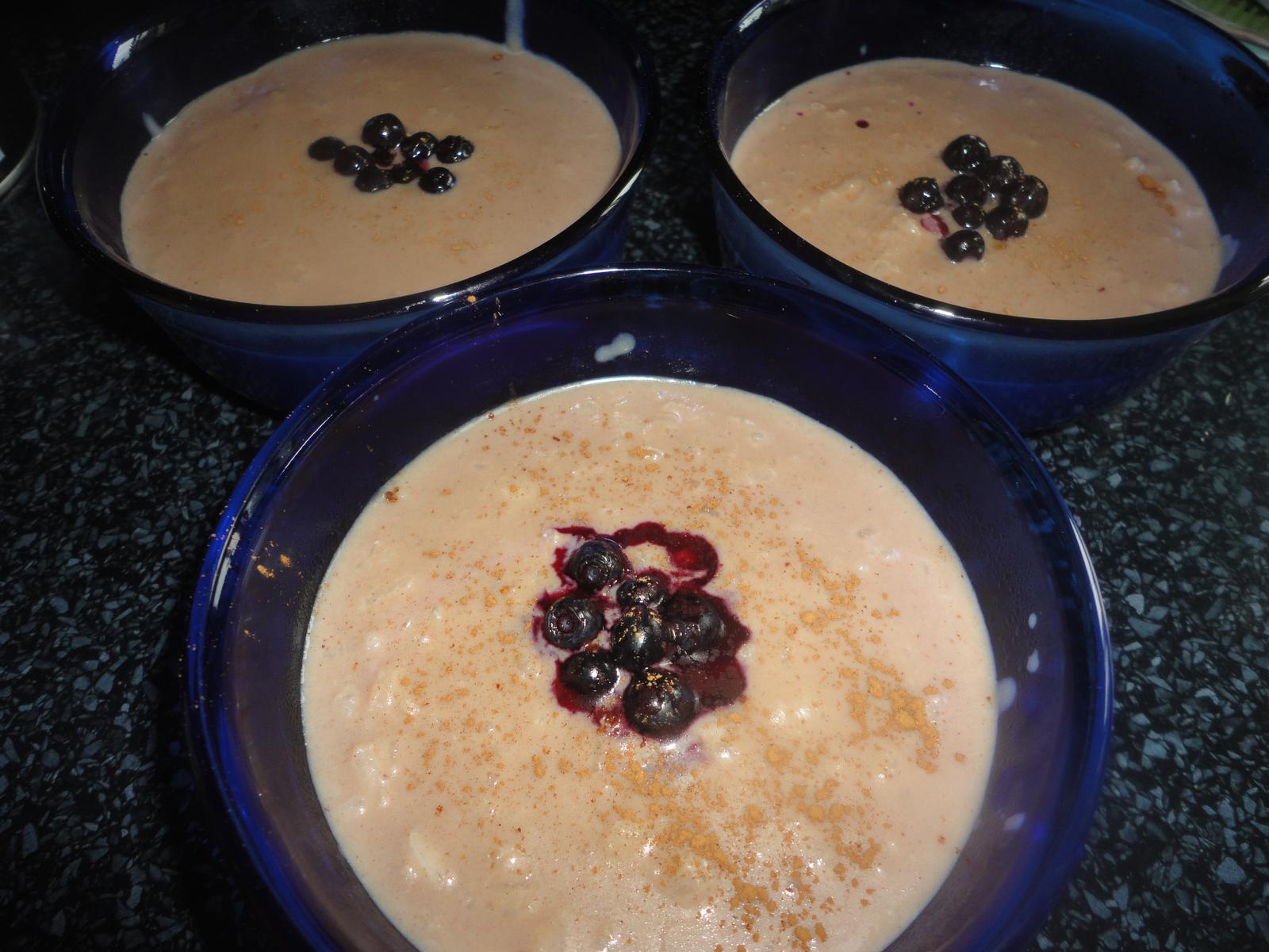 Keď ukončí program zamiešame 5 podrvených tabličiek horkej čokolády ,ozdobime škoricou alebo škoricovým cukrom a čučoriedkami ,alebo iným ovocím .Dobrú chuť želám 🙂
