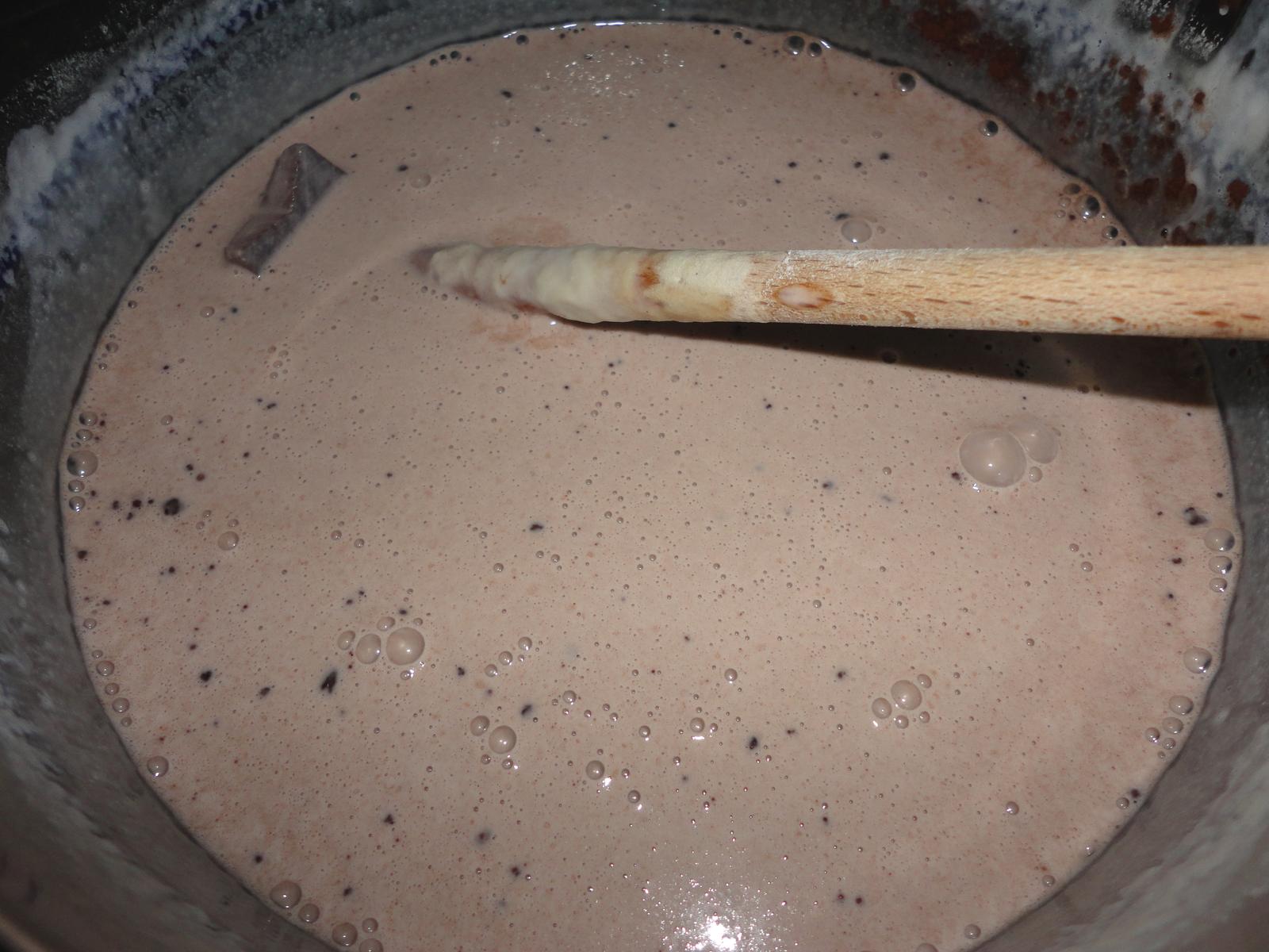cokoladove palacinky ,cesto rovnake ako pri bielych ale pridam kakao a znova pocakm kym hrcky povolia ,necham cesto odstat