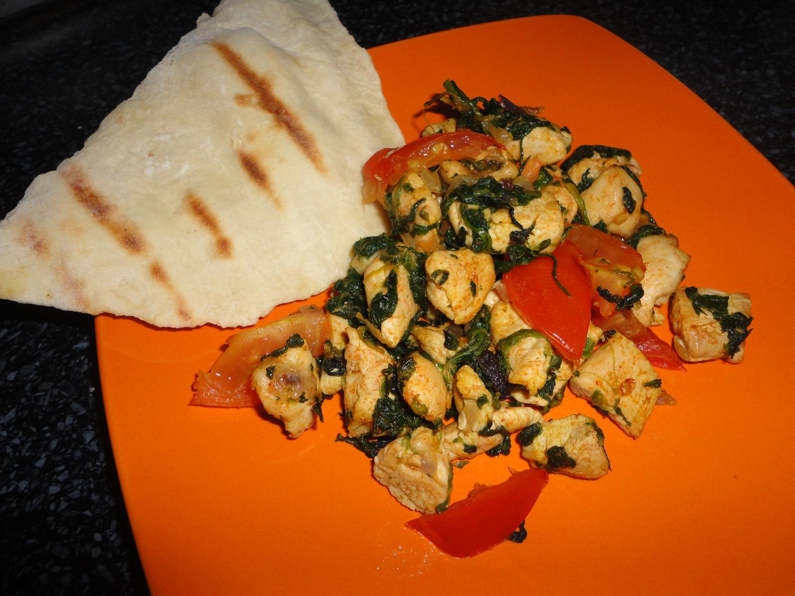 .naan - 200g muky, 1mala lyzicka drozdia, trosku soli, trosku cukru, 2pl olivoveho oleja , a cca 100ml mlieka . Vymiesit nechat nakysnut trosku , natenko vyvalka a grilovat - cca 30 sekund z kazdej strany ..to nafukne sa