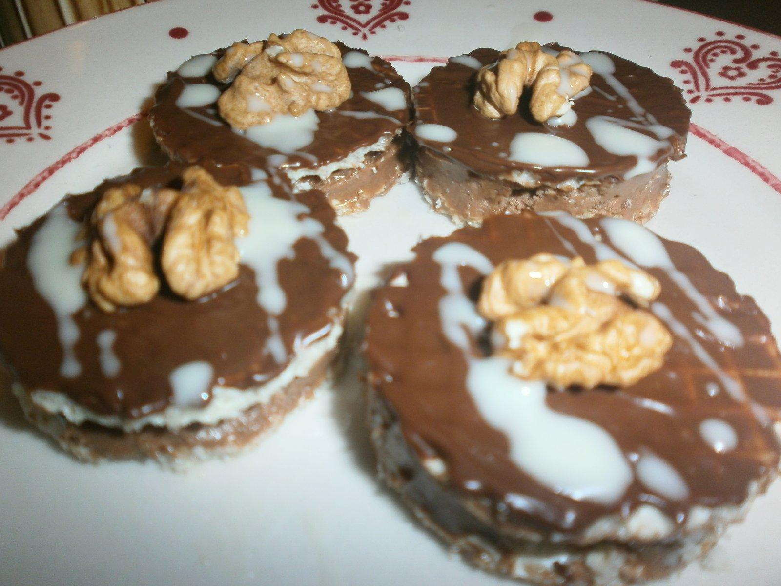 Kolieska spajam plnkou ,dam polevu a ozdobila som este bielou roztopenou cokoladou