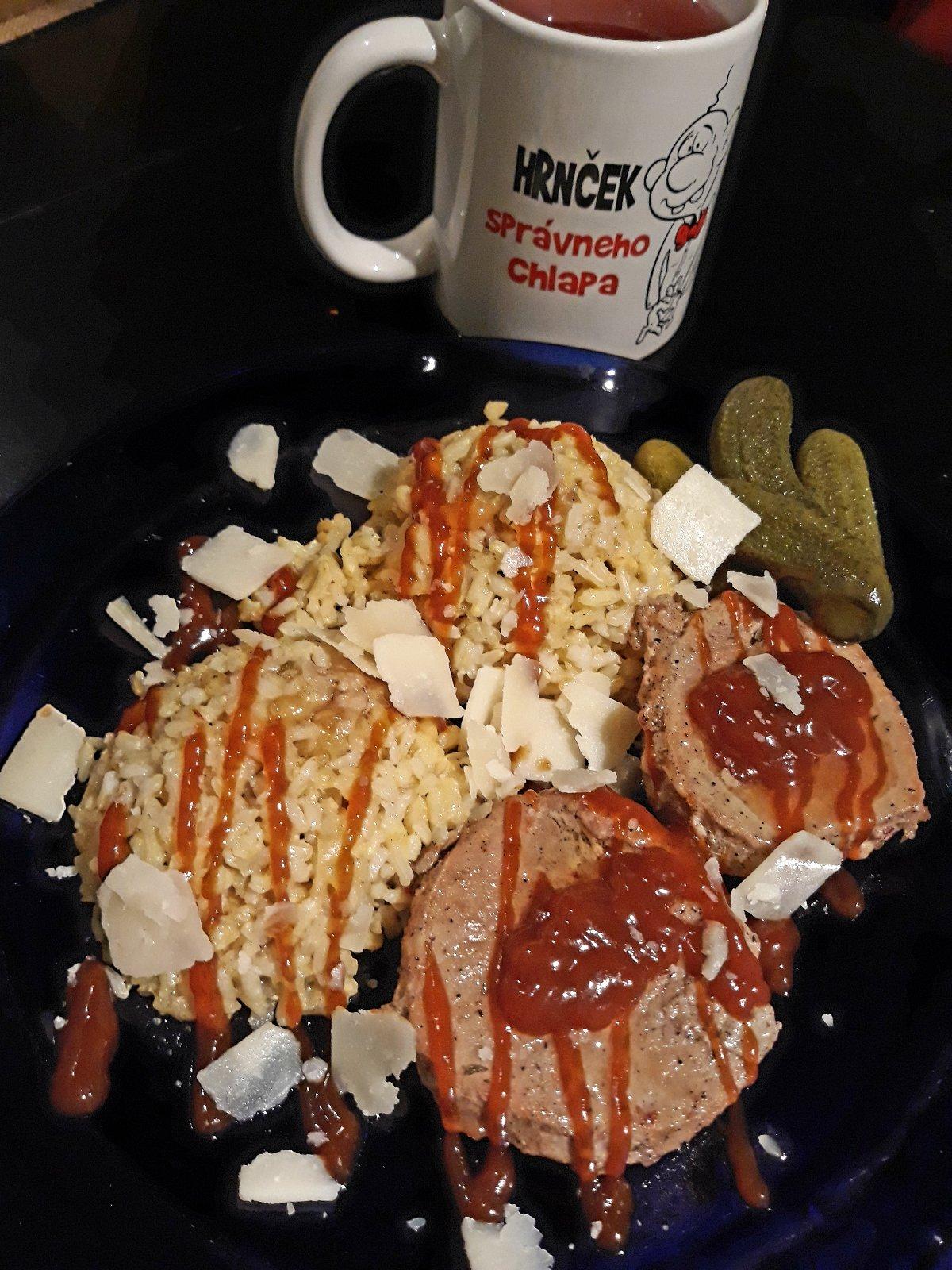 Vecera pre mojich chlapov , telacie medailonky, sipkovy dzem a parmezan