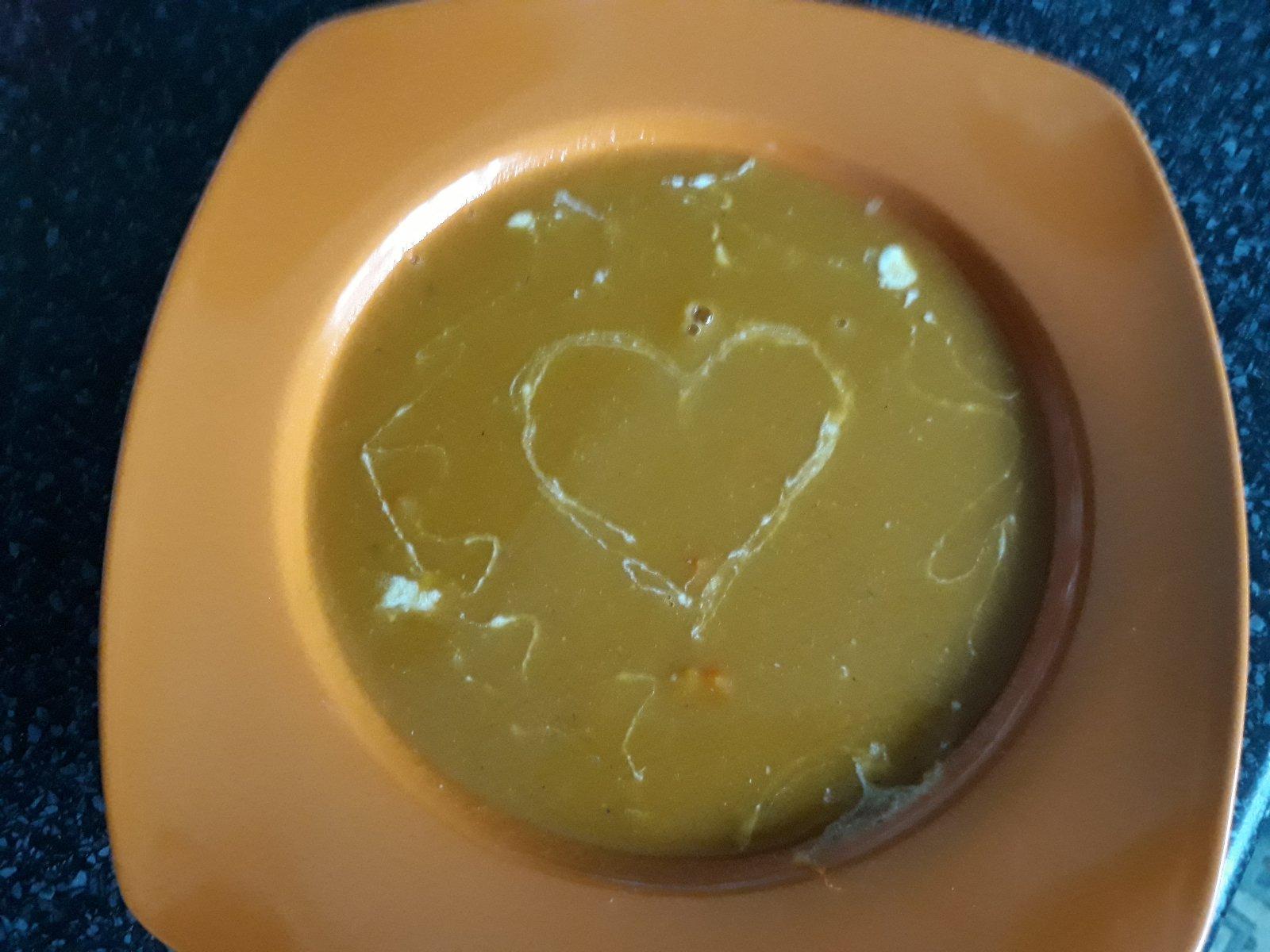 Polievka -cercena sosovica, batat, mrkva , cibula, cesnak na vtch biely jogurt alebo kysla smotana