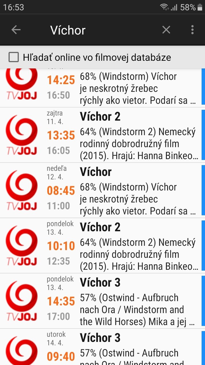 Nedela 8,45h.je to tam vsetko aj opakovanie.Vichor to je prva časť. Pa