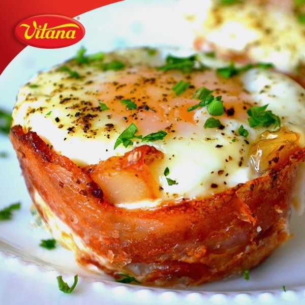 1. Do formičiek vložíme 2 kusy šunky a rozbité vajíčko.